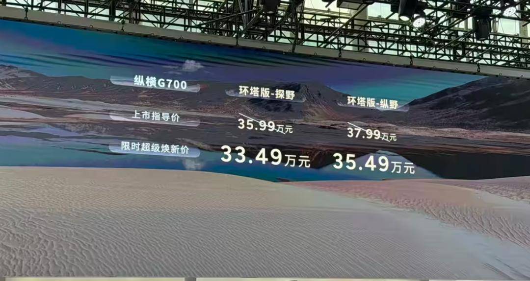 2025廣州車展,縱橫G700環塔版正式上市。新車共推出2款車型,指導售價35.99-37.99萬元,限時超級煥新價33.49-35.49萬元。新車是基于縱橫G700進行了全方位的越野配置升級,專門為發燒級越野愛好者準備的新版本。