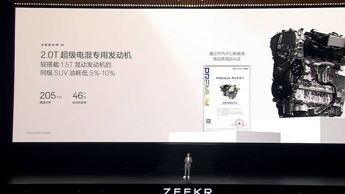3.發動機熱效率46% ,發電機峰值功率為145kW,在電量僅剩 20% 的饋電模式下,極氪 9X 的加速比高SOC時慢 0.2 秒;