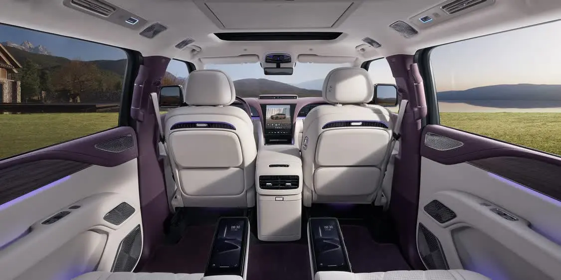 U8L 鼎世版是大六座布局,座艙空間達到了 5.3m³,提供了黑棕、紫灰兩款內飾配色,比亞迪介紹說這兩種顏色的靈感分別來自于「 秋日廬山的深沉畫卷」和「香爐紫煙」的氤氳 。
