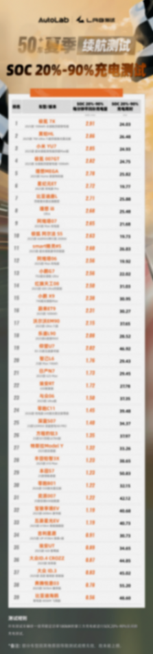 此外榜單中只展示了39款車(chē)型,部分車(chē)型未上榜的原因是充電測(cè)試過(guò)程中存在其他情況干擾,比如誤被其他車(chē)分流等情況,經(jīng)過(guò)我們核對(duì)后為保證測(cè)試公平性,所以就未能統(tǒng)計(jì)在內(nèi),這里也向大家說(shuō)聲抱歉。