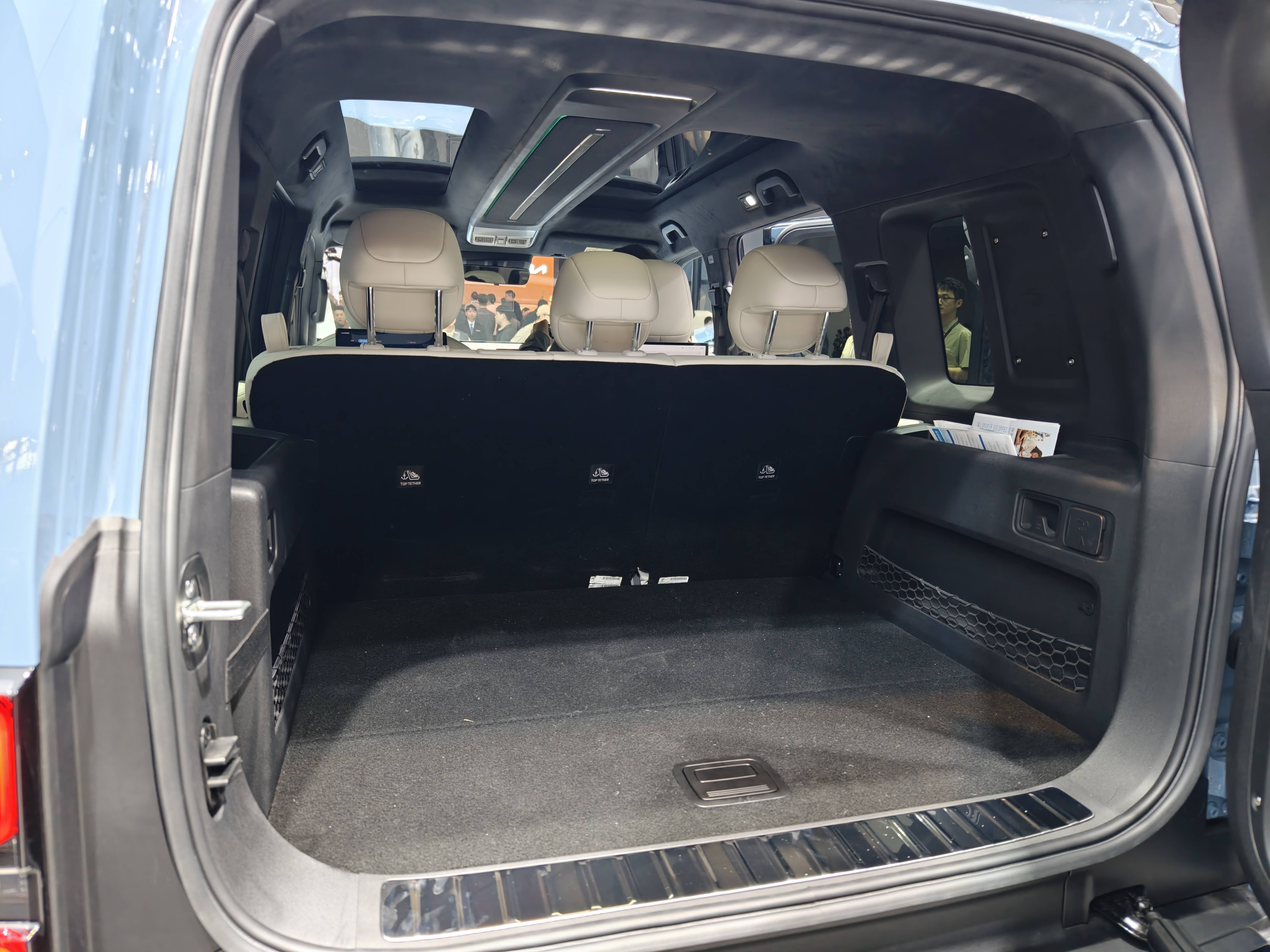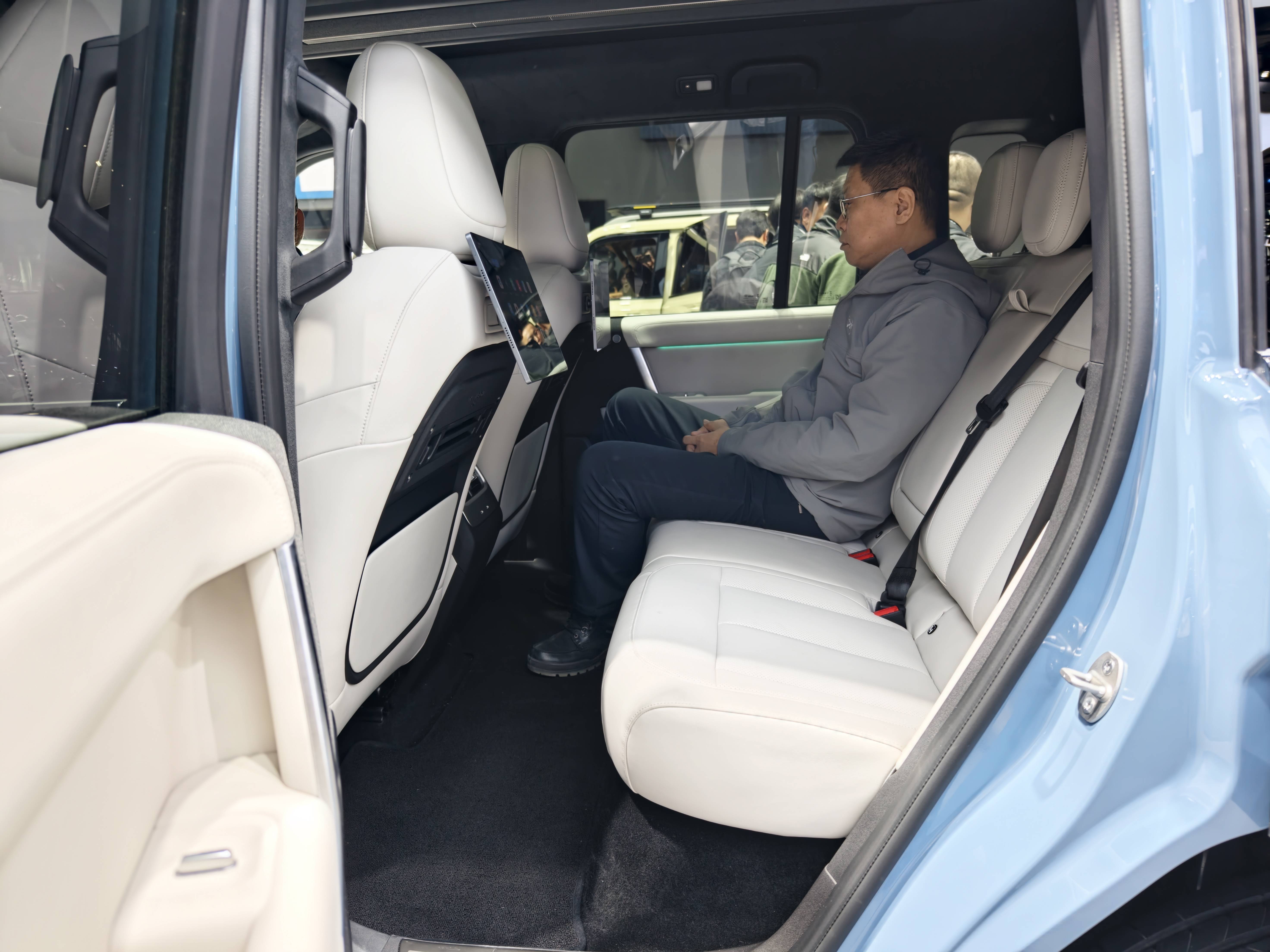 內(nèi)飾沒有太多出圈的細(xì)節(jié),對稱設(shè)計(jì)布置得很工整,符合硬派SUV的風(fēng)格,15.4英寸大屏有8295芯片支持,電子換擋讓中央通道可以更好布置無線充電、駕駛模式調(diào)節(jié)和杯架,空調(diào)也保留物理按鍵。值得強(qiáng)調(diào)的是,iCAR V27的IP臺和小米一樣設(shè)置1/4英寸接口,可以安裝攝像機(jī)等外置設(shè)備,另外車頂前后貫通的“天空島”把全景天窗分割兩個(gè)區(qū)域,中間既有氛圍燈,也留出拓展功能。從材質(zhì)來看,新車還算下本,除了舒適的座椅皮革和大面積軟包,頂棚也是翻毛皮質(zhì)感。